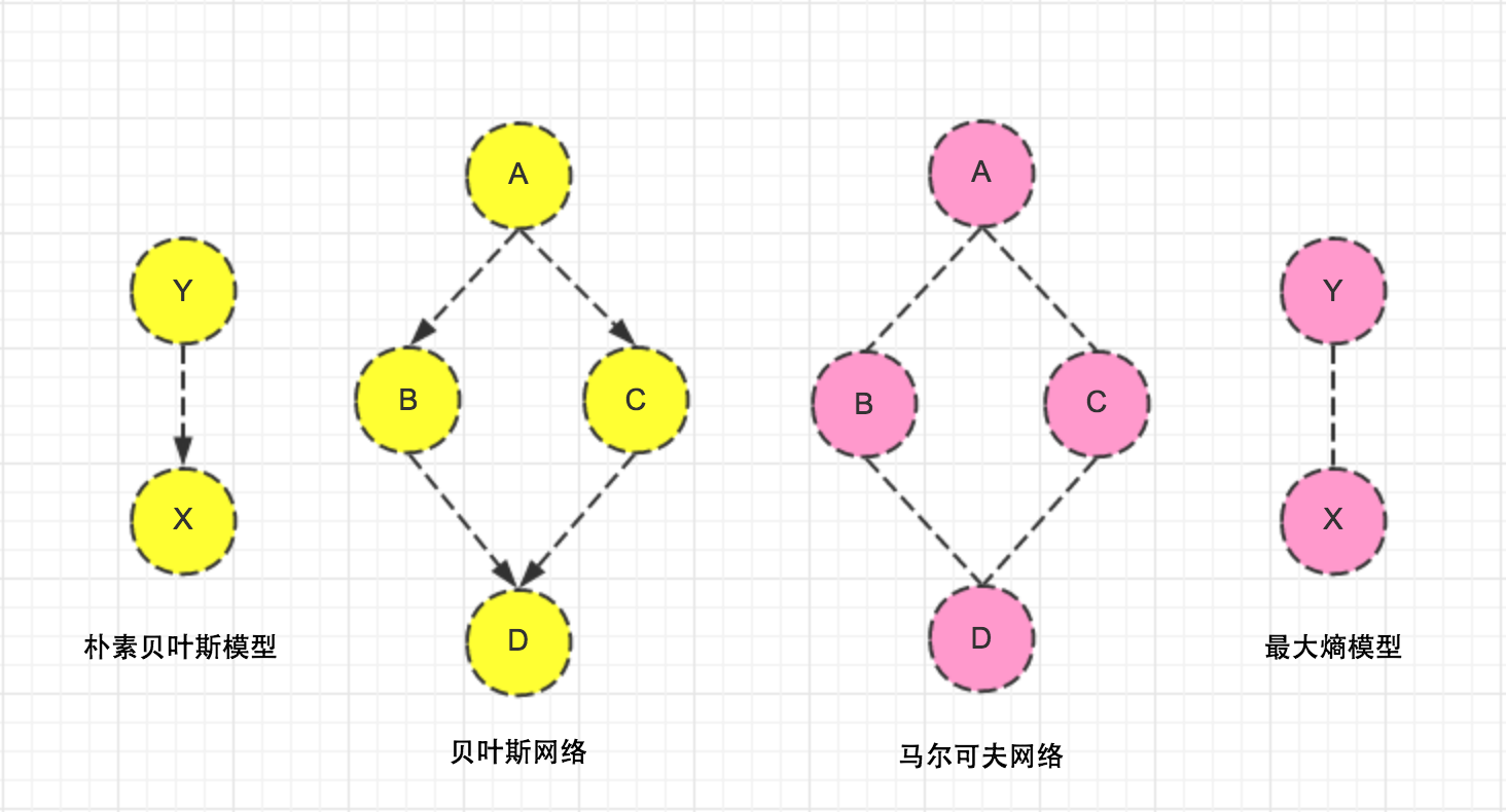下面我们看看这些模型各自的概率图模型是怎样刻画的并分析各自所表达的含义。