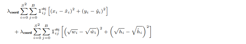 - 更重视8维的坐标预测,给这些损失前面赋予更大的loss weight, 记为 \(\lambda_{coord}\),在pascal VOC训练中取5。(上图蓝色框)