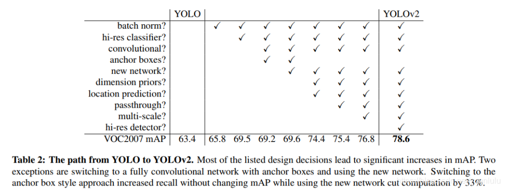 YOLOv2的主要改进思路都在一个表格里了: