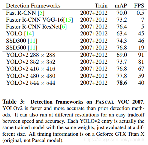 在高分辨率下,YOLOv2是一款先进的检测器,在VOC2007上获得了78.6的mAP,同时仍以高于实时速度运行。