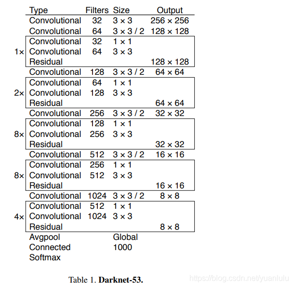 作者对Darknet进行了改进,将网络深度扩展到53层,并在Imagenet上进行了预训练。新的网络称为Darknet-53。